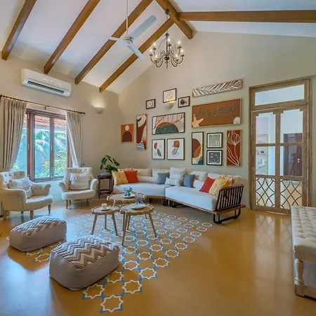 La Saffronstays Sweet Mango - 4Br Goan Villa With Private Pool, Mango Garden, Bar Gazebo & Vibrant Interiors Near Beaches incluye una pequeña cocina, además de una zona de comedor y un comedor al aire libre para que los huéspedes puedan cocinar por sí mismos. También puedes utilizar nevera para prepararte la comida. Los huéspedes pueden comer en el restaurante Taverna Miguel, que está a unos 2 km. Los huéspedes pueden alcanzar el lugar en coche desde el aeropuerto Internacional de Goa en 48 minutos.