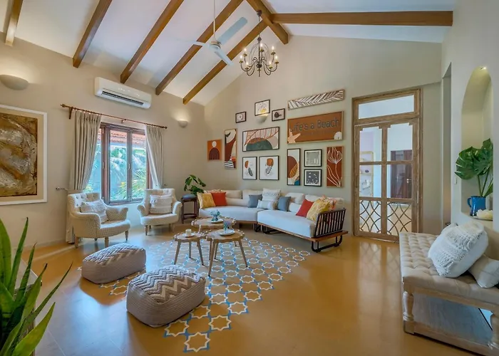 Esta villa se encuentra a unos 10 minutos en coche de la carretera Calangute - Baga. Los amantes de la historia disfrutarán visitando el Fuerte de Chaporá, situado a unos 6 km. Situada a unos 15 minutos en coche de la Iglesia de San Cayetano, la Saffronstays Sweet Mango - 4Br Goan Villa With Private Pool, Mango Garden, Bar Gazebo & Vibrant Interiors Near Beaches es uno de los destinos favoritos de fieles y turistas.